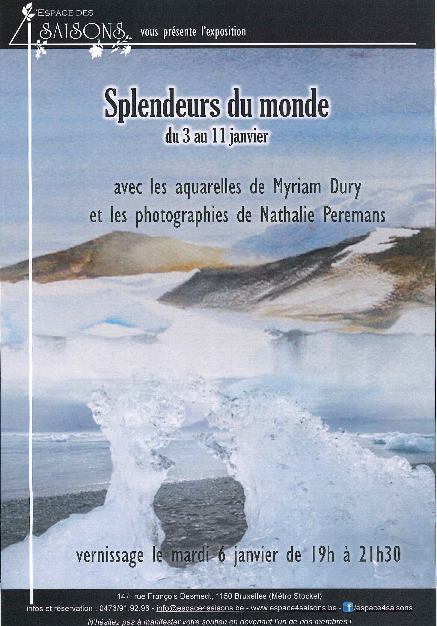 C‘est avec beaucoup de plaisir que Nathalie Peremans et moi-même vous convions à notre prochaine exposition intitulée : « Splendeurs du monde ».